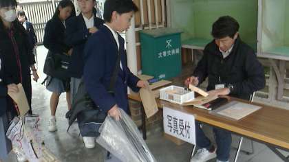 写真代を申込用封筒に入れて、たくさんの生徒が手続きに並んでいました。