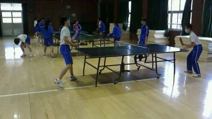 講堂の床材は集成材の上に樹脂が塗ってあり、すべりにくくなっています。今日も卓球部の生徒が練習に励み、スマッシュを打ち込んでいましたが、この床材が足元を支えてくれて初めて成せるプレーかと、練習を見ながら感謝の気持ちがわいてきました。
