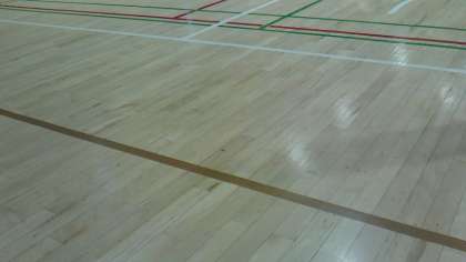 また体育館の床材も見ていかれました。体育館の床材は35年前建築時の無垢の1枚板で、以前はいくらか反りがありました。現在の体育館の床面は、昨年の1月の全体的な床面改修工事時に、平らに削っていただき、各種競技のラインを塗り直していただいたものです。