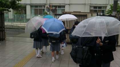 本日はあいにくの天気となり、生徒の下校時は傘をさして帰っていきました。