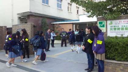 子どもたちが落ち着いた環境で学校生活に取り組めるよう、PTA実行委員さんをはじめ、保護者の方に来ていただき学校をよくしていこうと朝早くから取り組んでいます。
