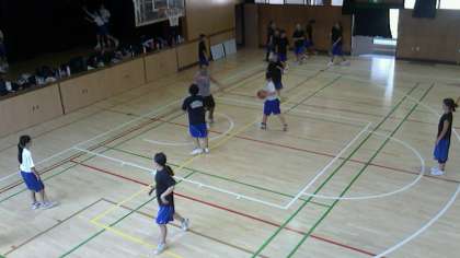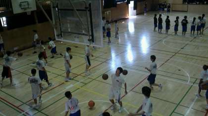 体育館では男子・女子バスケットボール部が、顧問の先生の指導を受けて大きなかけ声で練習していました。1週間のブランクを感じさせない、キレのあるプレーを見せていただきました。