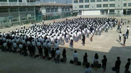 今日の全校集会、8時25分の整列時間に遅れてくる生徒が多くありました。決められた時間に間に合うように家を出てきてください。よろしく!!