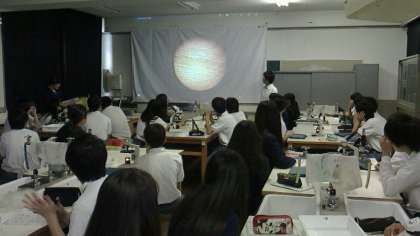 教師のパソコンに集められた画像が、スクリーンに映し出されました。