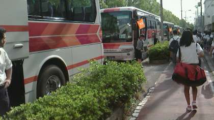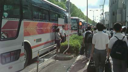 手前の1組の1号車から順番に並んでいます。同じ色の同じ車両が8台並んでいると見ごたえがあります。
