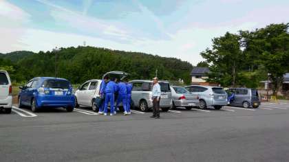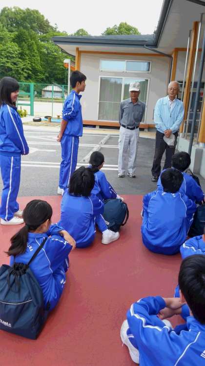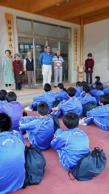 千代地区の退村式です。「バーベキューの肉、ハンバーグ美味しかった。農家体験やった。」と感想を教えてくれました。