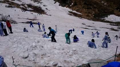 高温続きで雪が残っているのか心配していましたが。 ご覧のように雪遊びができています。