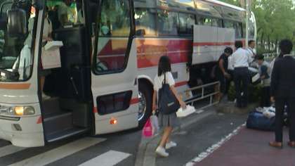 長野県の出発が30分ほどの遅れとのこと、名神高速道路の集中工事の影響を心配していました。順調に走ることができ、当初の予定通りの時間にバスが到着しました。