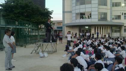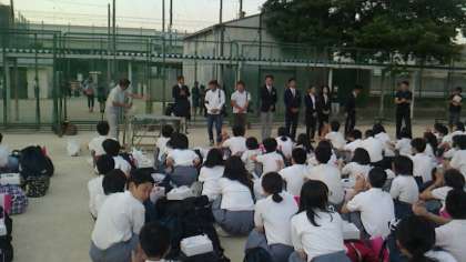 校長先生のあいさつがあり、今回の修学旅行を、91点と高得点がつけられました。