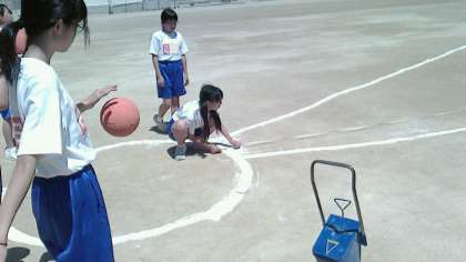 投てき後にはすぐメジャーで測定し、先生に記録していただきました。