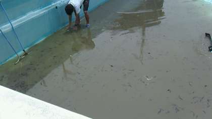 ドライヤーでのプール清掃