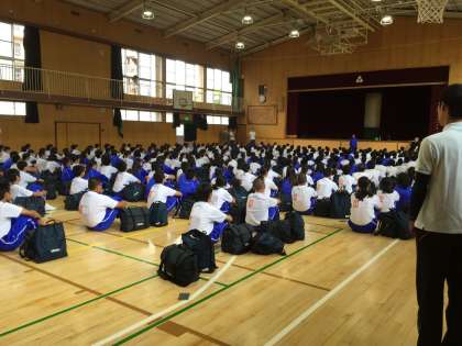出発するときにスムーズな移動ができるように、乗車するバスごとに体育館では並んでいました。