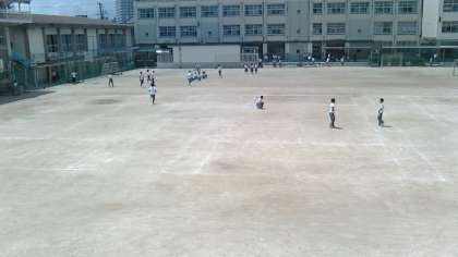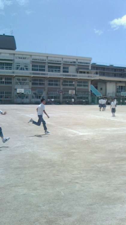 歌島中学校のお昼休み、13時20分の第1グランドの状況です。生徒はいつものように、グランドを走り回っています。