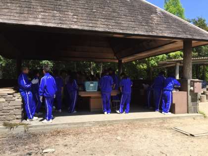 野外炊飯場でカレー作りスタートしてます。