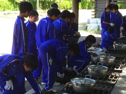 飯ごう炊飯始まりました。美味しいカレーはできるでしょうか?