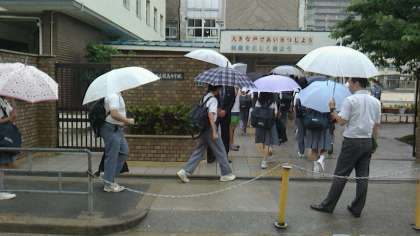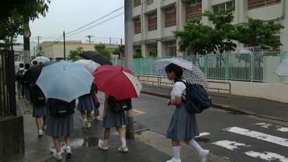 6月13日(月)は前夜からの雨のため傘をさしての登校となりました。