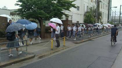 雨天の全校集会