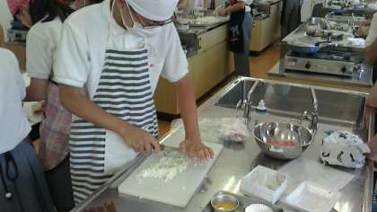 次に玉ねぎのみじん切りです。包丁をテンポよく扱い細かく刻んでいる男子生徒を見かけました。