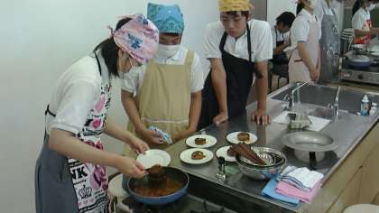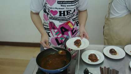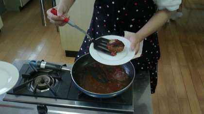 盛り付けでは、トマトソースがハンバーグに充分にかかっています。