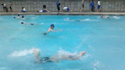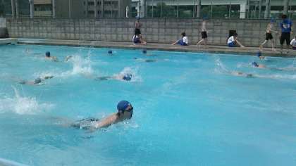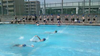 3年生は全員が、クロール・平泳ぎ・背泳ぎ・バタフライと4泳法を順々に泳いでいました。きれいなフォームで力感あふれる生徒も見かけました。