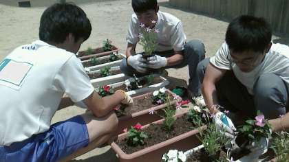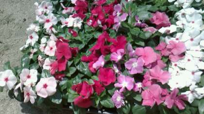 日日草の花弁は、紅色・ピンク色・白色・クリーム色に芯が紅色といろんな色の花があり、とてもカラフルで華やかです。