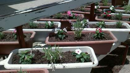 これで正門の両側で花を飾ることができました。カラフルな花が目を楽しませてくれそうです。