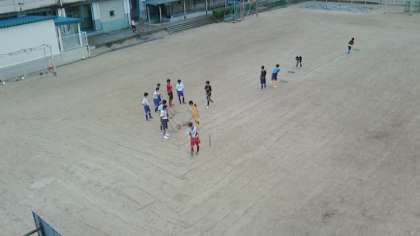 サッカー部の練習終了後、部員が整地をしました。コートの周りから中心部に向かってレーキをかけていき、まるで畑のような跡が残っていました。整地ご苦労様でした。