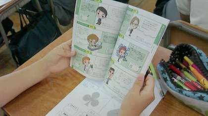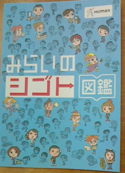 生徒たちは積極的に参加して、今後の進路選択に向けて自分の特徴を生かしながら、自分を育てていく楽しげな授業でした。カラフルな「みらいのシゴト図鑑」を全員1冊いただき、さっそく職業選択の参考に読んでいました。
