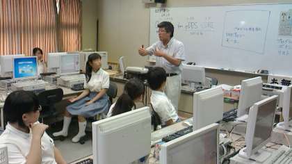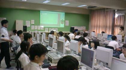 生徒は先生のお話を真剣に聞いてから、パソコン操作に集中していました。