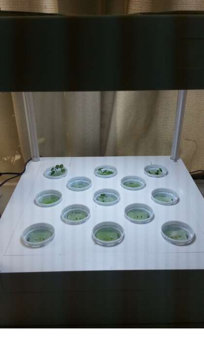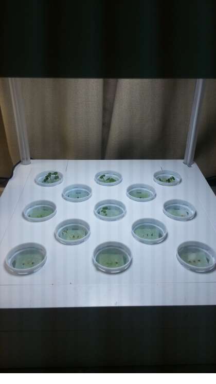 水耕栽培(大)との違いを比較するために、液肥の種類を変えて、日照時間変えて、研究をしています。