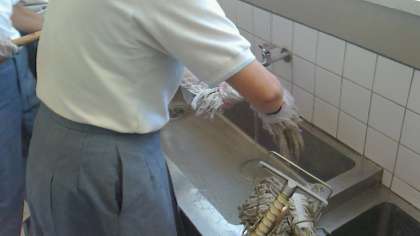 最後は使用した道具の洗浄と後片づけです。努力を惜しむことなく、一生懸命に洗ってくれている姿が印象的でした。