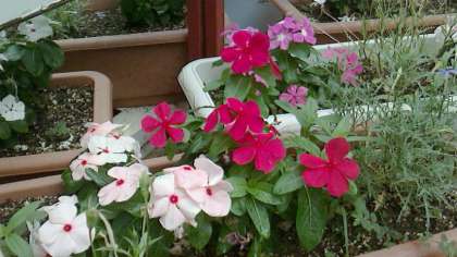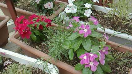 6月18日に元気アップ事業で植えていただいた花苗が、順調に育ちイソトマと日日草が咲き続けています。
