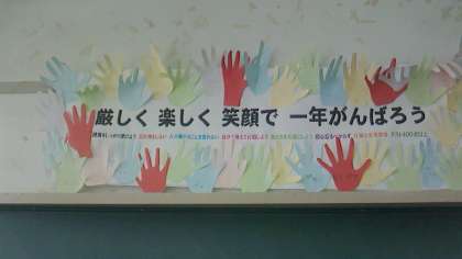 「厳しく 楽しく 笑顔で 一年がんばろう」とあります。