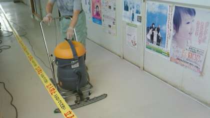 3.浮いてきた、古いワックスをバキュームクリーナーで吸い取ります。