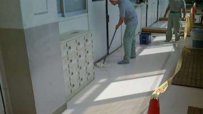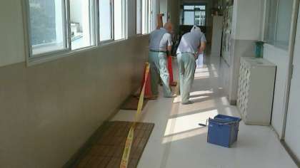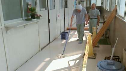 4.乾いた状態で新しいワックスを、モップで塗ります。