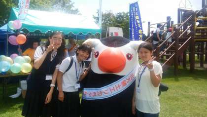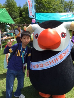昼ごはんを食べたところで、偶然にも北方領土のイメージキャラクターに会うことが出来ました。北海道の東側ではいろいろなところで、北方領土返還運動の取り組みをしています。多くの人に北方領土について知ってもらいたいです。
