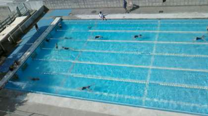 連日の猛暑に負けず、体育館で汗を流した後の冷たいプールは格別のようです。
