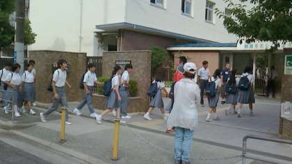 玄関では先生方と元気よく「おはよう」とあいさつを交わして校内に入ってきました。