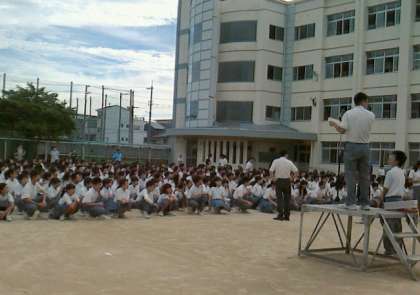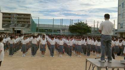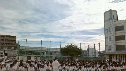 9月5日(月)は台風の心配もありましたが、グランドでの全校集会を行うことができました。