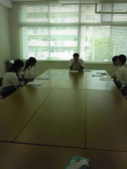 大阪信用金庫では、会議室で銀行のお金の貸し借りについて、皆が勉強しています。