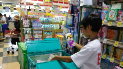 品出しに一生懸命の生徒達です。没頭していてカッコよかったです。