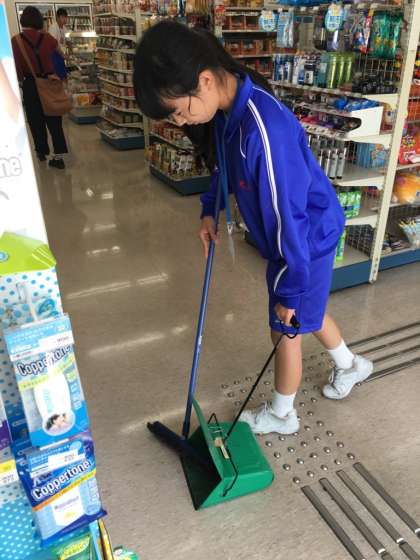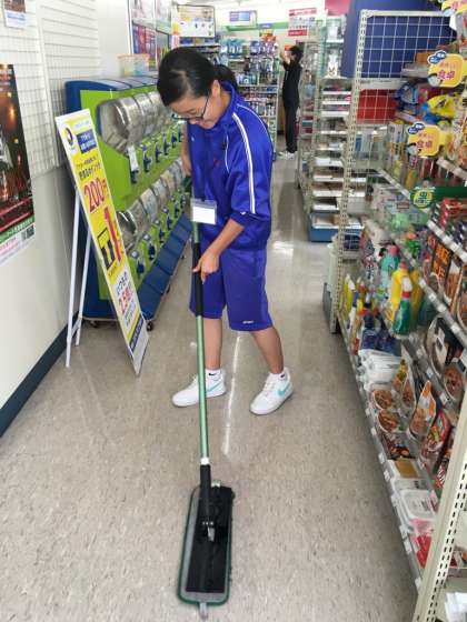 店内の清掃作業中。