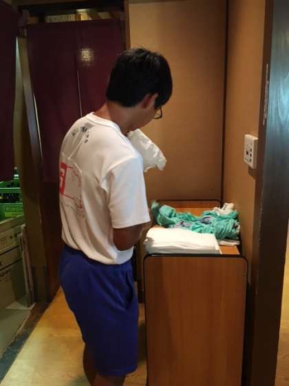 お客様の少ない時間帯には、ホールの仕事も体験させていただきました。