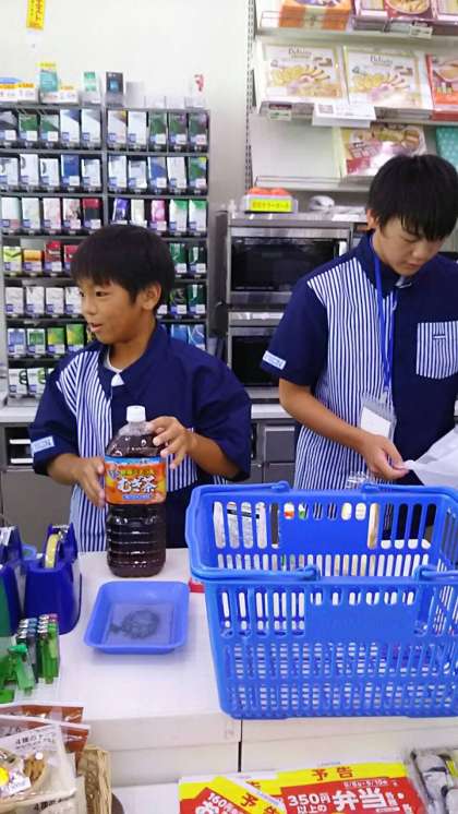 ローソンのユニホームを着せてもらい、品出しをしたりレジ打ちをさせてもらっていました。