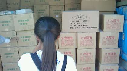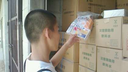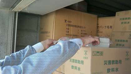 倉庫内は各種の備蓄物でいっぱいでした。倉庫の中から災害救助用飲料水等の箱を数えました。災害救助用飲料水の段ボール箱を取り出して、奥の方にある物資も数えていただいてました。数えた後は元どおりに収納されました。