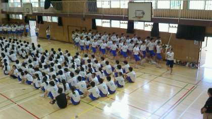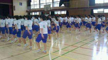本日より9月30日(金)開催予定の、体育大会の学年練習が始まりました。登校時の強雨のためグランド不良につき、残念ながら体育館での練習となってしまいました。1・2時間目が1年生、3・4時間目が2年生、5・6時間目は3年生が練習をしました。