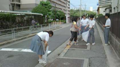 今日も8時前から登校して、正門近くの道路や第2グランド横の道路で、先生と協力しながら紙ごみ等を拾っていました。