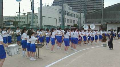 吹奏楽部の音楽をバックに、生徒会に続き1年生から入場してきました。