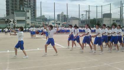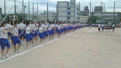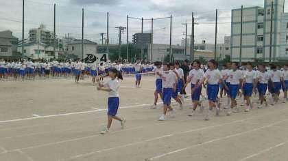 大きな声での行進は迫力があり、24クラスがきれいに並ぶ姿は壮観です。