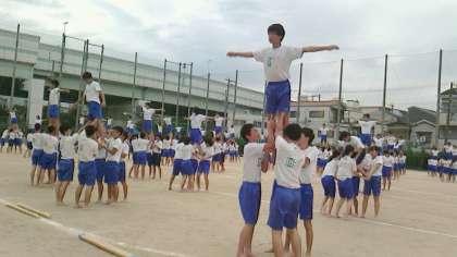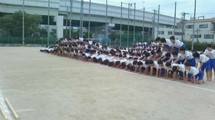 9月28日(水)の6時間目に、第2グランドで3年生の組体操の練習を行いました。